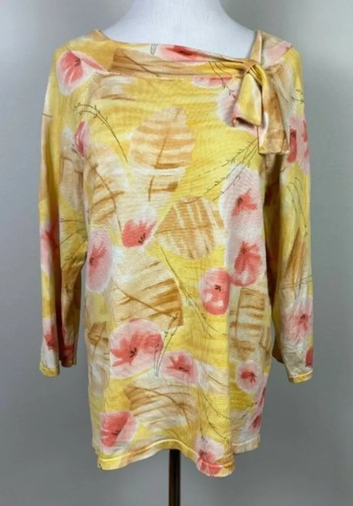 Pendleton Blouse Sweater Top L Silk Blend Floral Boatneck Tie 3/4 Sleeve Ribbed Women's Large Very... Show more