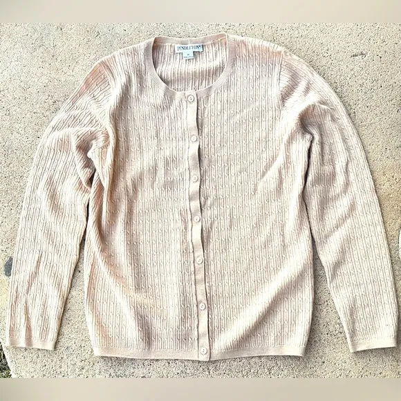 This PENDLETON cardigan is a stunning addition to any wardrobe. Made of 100% Merino Wool, this tight-knit sweater features a crew neckline and long raglan sleeves. The beige sweater has a Classic theme and a vintage look with a jewel button accent. The cardigan is perfect for all seasons, and can be worn on any occasion, from casual to dressy. It is important to note that this sweater has been pre-owned, but it has been well taken care of and is in excellent condition. The garment care instructions recommend hand wash only. This women's size Medium sweater is a regular fit and has a comfortable and breathable fabric. The sweater is made in China and comes from the Sweaters category in Women's Clothing. Very good pre-owned condition No major areas of discoloration No holes rips or tears. I gladly accept offers