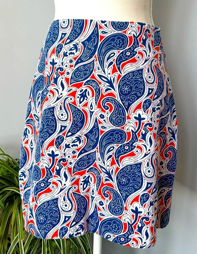 Pennington & Bailes 100% Cotton Blue‎ Orange White Paisley Summer Miniskirt sz 4 - $24 - From Jennifer