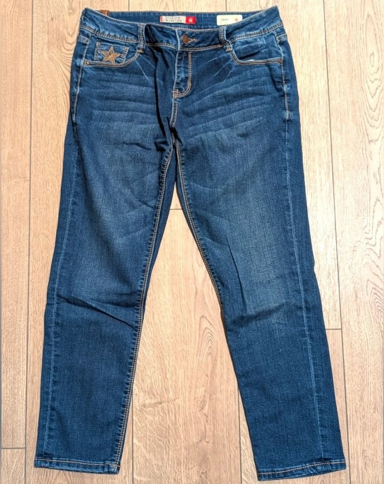 Peoples Liberation Crop Skinny Jeans in Juniors Size 9/10! Awesome Jeans, great price! Dark faded wash, mid rise waist, button/zip fly, belt loops, classic 5 pocket style with star bling back pockets, skinny crop legs! Great, pre-owned condition!! Juniors 9/10 Waist: 31" Rise: 8.5" Hips: 39-40" Inseam: 26.5" Leg Opening: 6" Across Bottom Hem