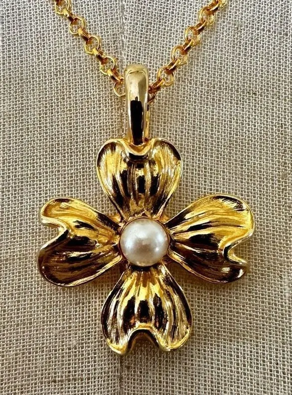 P.E.P. Gold tone flower pendant faux pearl center Pendant is PEP, chain is new Lobster clasp Very pretty! Excellent condition Please see photos. They are part of the description. Happy to answer any questions! Check out my other listings - lots of jewelry! New listings every day. Thanks for stopping by!