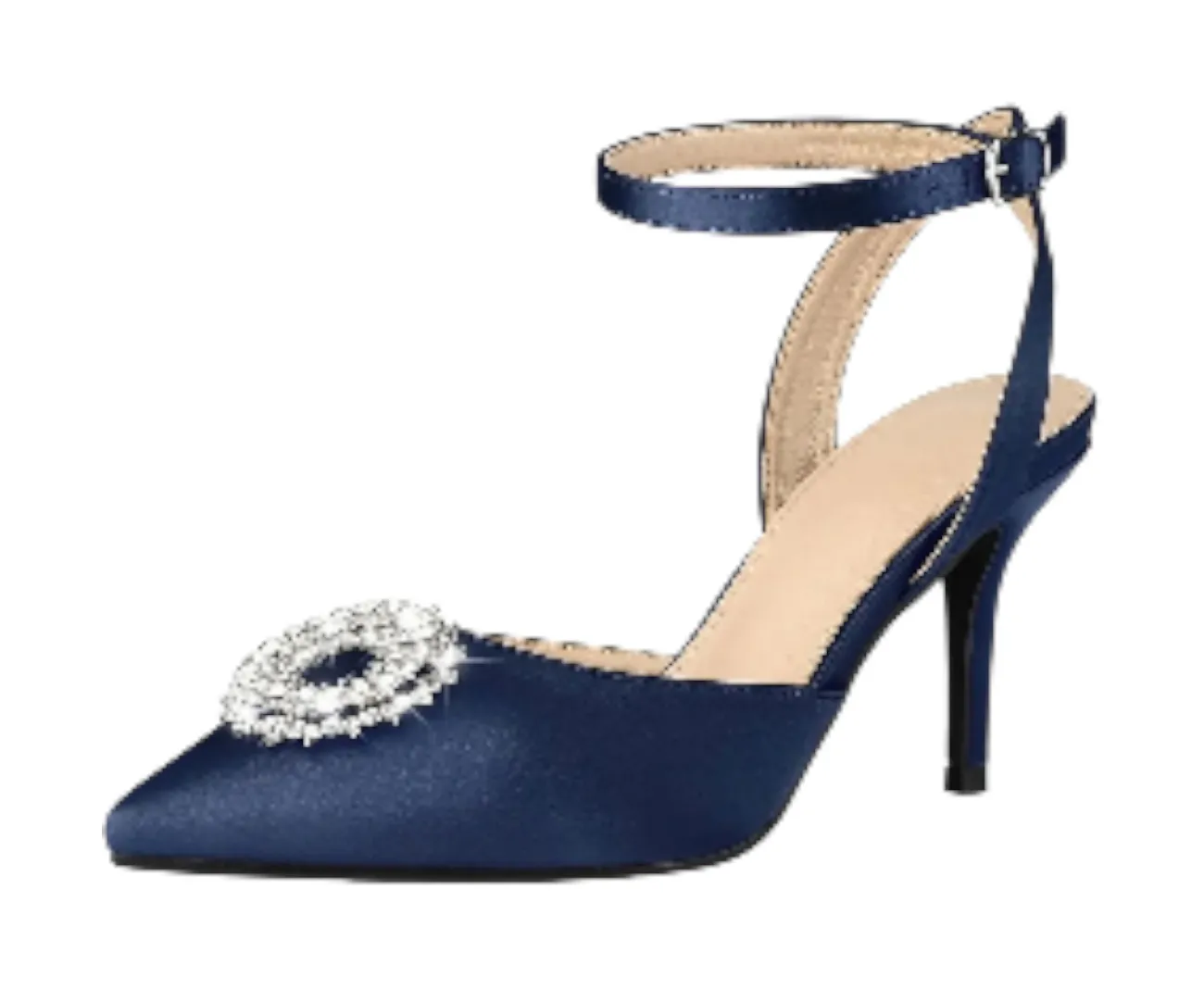 Perphy Womens Heels Size 10 Royal Blue Satin Rhinestone Embellished Slingback Cocktail Pumps Shoes... Show more