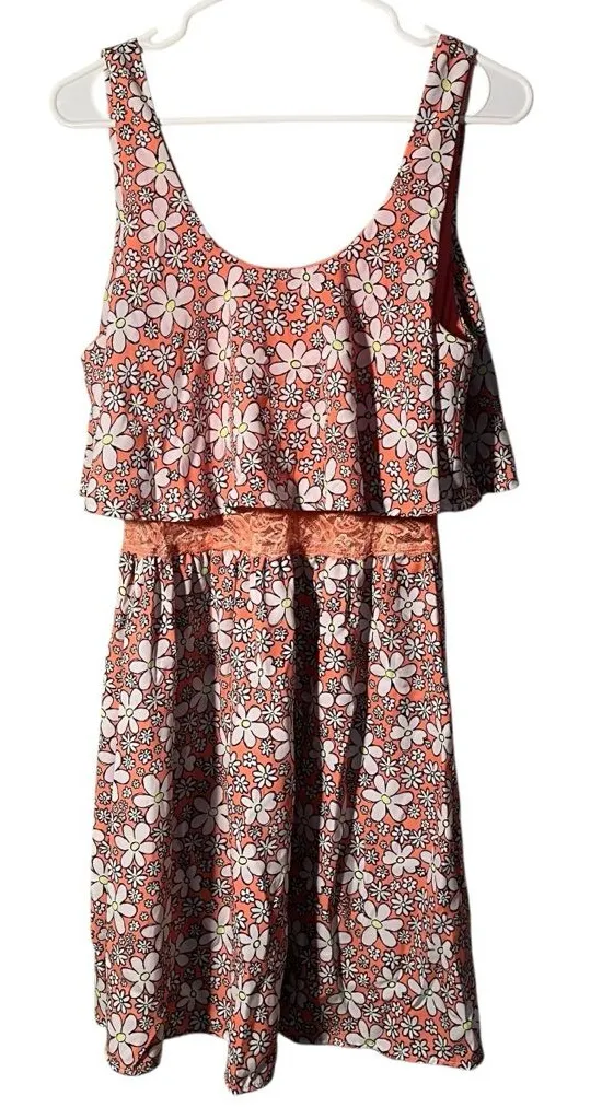 Good condition, minor wear. Persaya. Sun dress. Sleeveless. Scoop neck. Pink color with white and neon yellow daisy floral pattern. Lace at waist. Hippie floral look. Style PD1266. Size XL. 100% polyester. Pit to pit laying flat 17” Shoulder to hem 35”. All measurements are approximate and taken lying flat. Smoke free home. No trades, offers welcome.