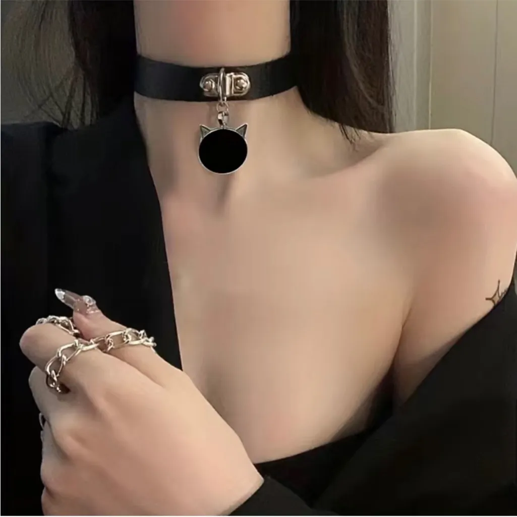 Personality Punk Kitten Head Pendant Faux Leather Halloween‎ Necklace Ladies Black - $13 New With Tags - From Mon
