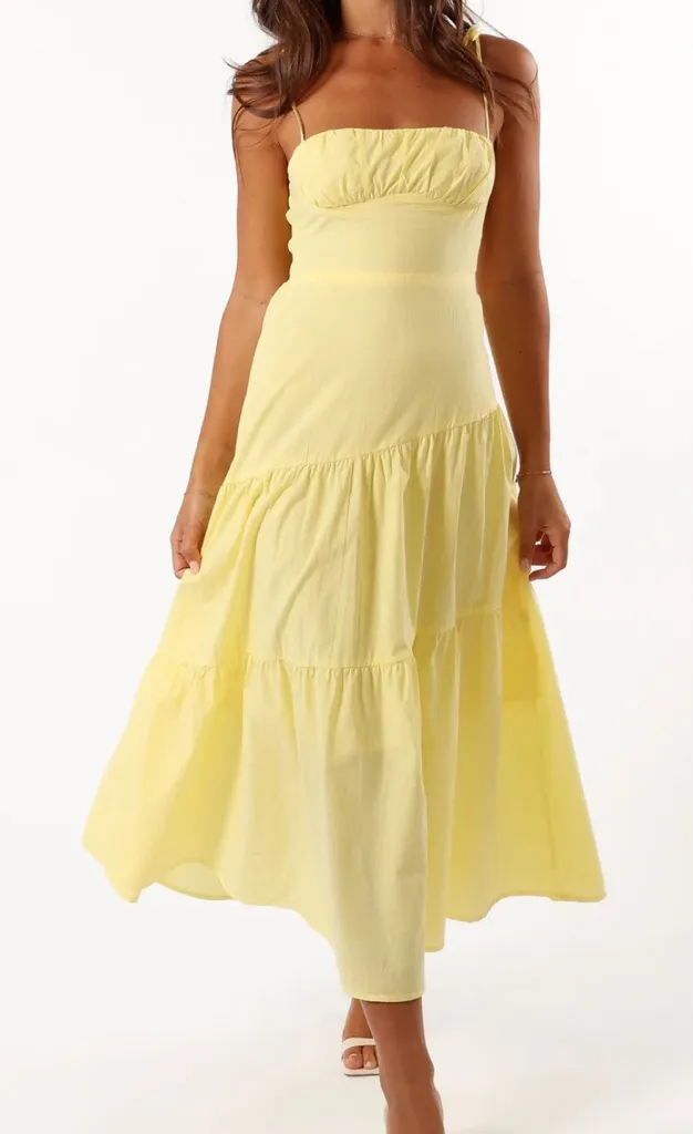 Petal & Pup BREXLEY MAXI DRESS - LEMON size M nwot yellow pale yellow butter yellow maxi dress sundress sun dress coastal beach vacation summer spring maxi lose dress girly trendy