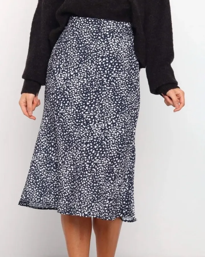 Classic and versatile Falco Skirt from Petal & Pup in navy. This midi-length pencil skirt is a true wardrobe staple — sleek, lightweight, and easy to style. The high-waisted silhouette is both flattering and comfortable, thanks to the elasticised back waistband. Worn once, excellent condition. ✨ Details: Brand: Petal & Pup Style: Falco Skirt Color: Navy Size: 8 Fit: Midi length, high waisted, pencil silhouette Features: Elasticized waist at back, lightweight, partially lined Condition: Brand new with tags Retail: $69 💡 Styling tip: Pair with a blouse and pumps for a chic office look, or style with a crop top and sandals for an effortless night-out fit. Approximate measurements (laying flat) Waist: 14, can stretch to 16 Length: 30
