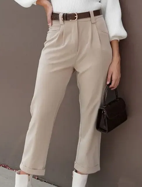 Petal & Pup Lexie Beige High Waist Ankle Straight Leg Cuffed Hem Pants Size 6 - $40 - From Jules