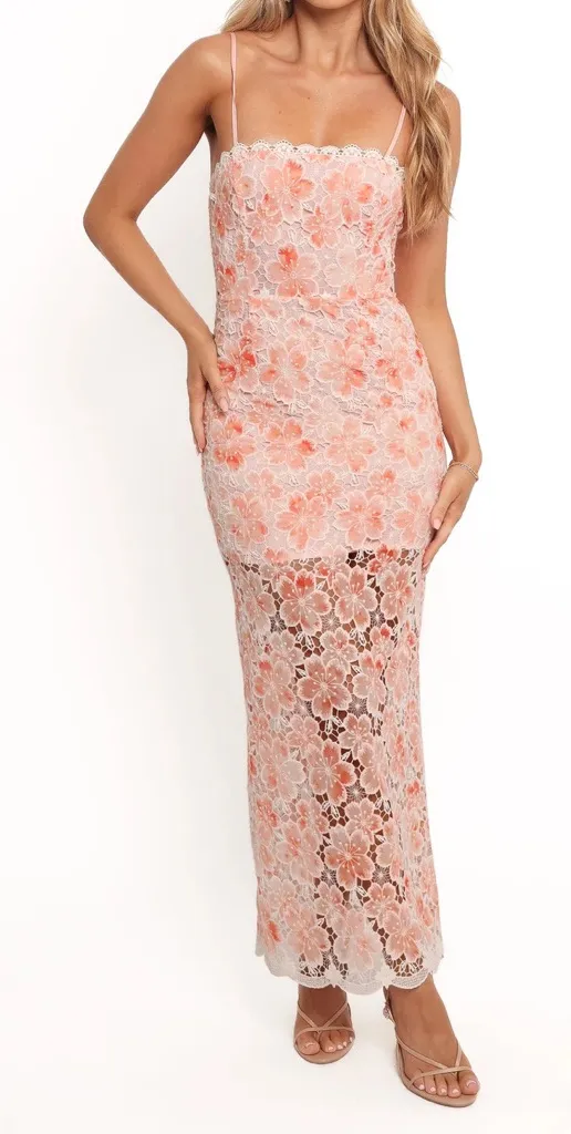 Petal & Pup Novie Maxi Dress Size XL NWOT wedding guest dress orange and white lace floral wedding guest garden orange sunset lace floral summer garden theme wedding summer formal summer semi formal The Novie Maxi Dress combines timeless elegance with contemporary flair. Slip into this dress with ease thanks to the back invisible zip, which maintains the dress's seamless design. The floral lace overlay adds a layer of sophistication, making it perfect for garden parties or sunset dinners. Partially lined for just the right amount of coverage. maxi length square neckline thin adjustable straps back invisible zip floral lace overlay partially lined - 95% polyester / 5% spandex material - 100% polyester Material 100% polyester Garment Care cold hand wash separately