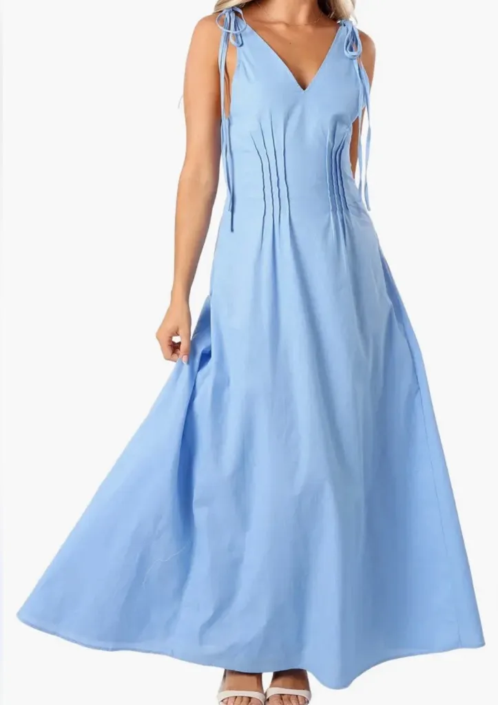 NEW WITH TAGS SIZE WOMEN'S SMALL 4 6 PP3 BLUE Dainty pintucks adorn the bodice of this tie-strap maxi dress cut from breathable cotton and linen. Hidden side-zip closure Deep V-neck Adjustable tie straps Lined 70% cotton, 30% linen Hand wash, line dry Imported Item #10419501 sleeveless, fitted bodice, full skirt, maxi dress, cotton blend, boho, cottage, great for all seasong, pair with boots and a sweater for fall, dress up or down!