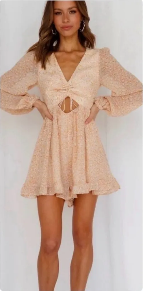 Petal & Pup Orange Floral Romper Long Sleeve Shorts Keyhole Size 8 US Great condition. No rips, stains or flaws. Gently worn. Orange floral playsuit. Tie-up back detail. Cut-out under bust. Lined. Cold hand wash only. Have fun wherever you go in the Hi There Playsuit! With its long billowy sleeves, ruffled hems, dainty sweetheart neckline and playful ruching detail at the bust - you're set to be fab and free! Style yours with sneakers and dainty gold jewellery