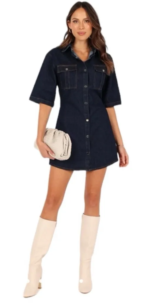 Petal & Pup Rev Mini Short Sleeve Button Denim Dress Size Small NEW Blue - $85 New With Tags - From E