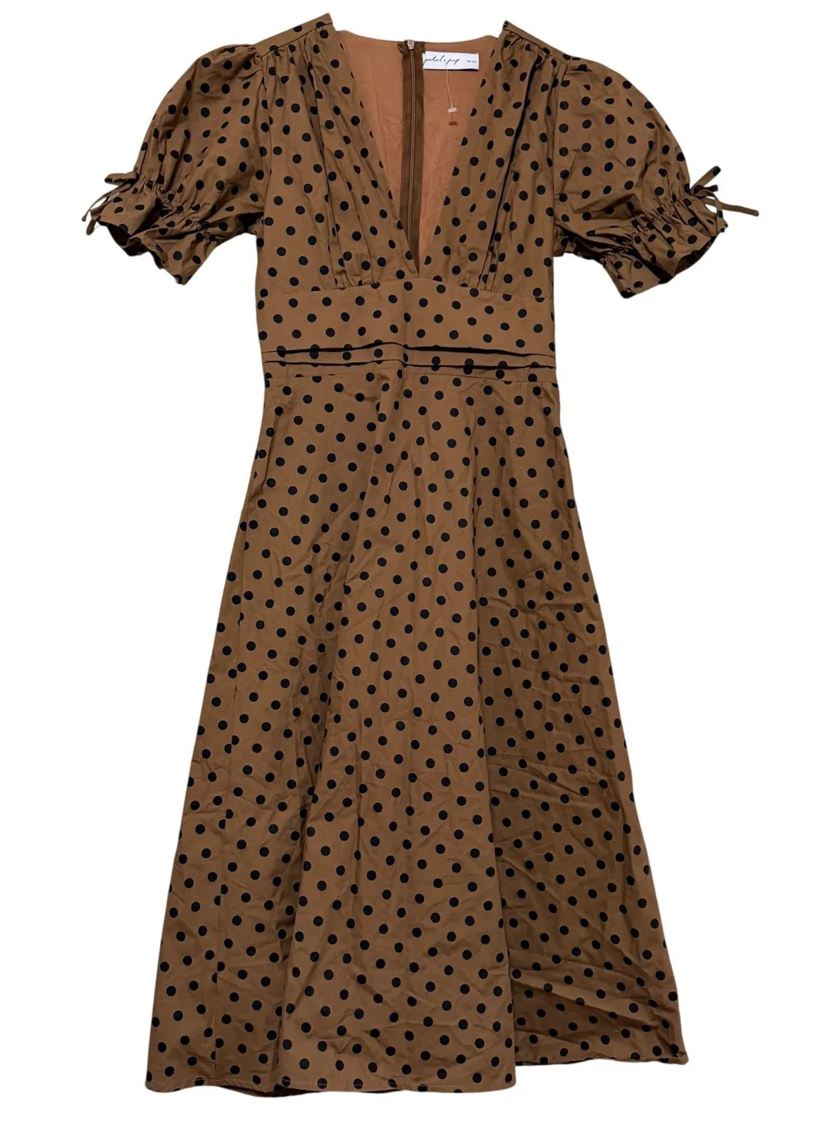 Petal & Pup Polka Dot Midi Dress Brown Pinup Retro Size: Small Approximate measurements laying fl... Show more