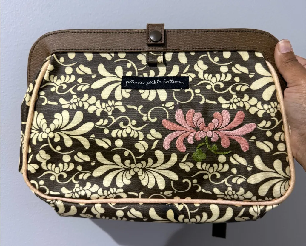 Stylish and functional, this Petunia Pickle Bottom women's bag features a charming brown and pink floral design. Perfect for everyday use, it combines elegance with practicality.