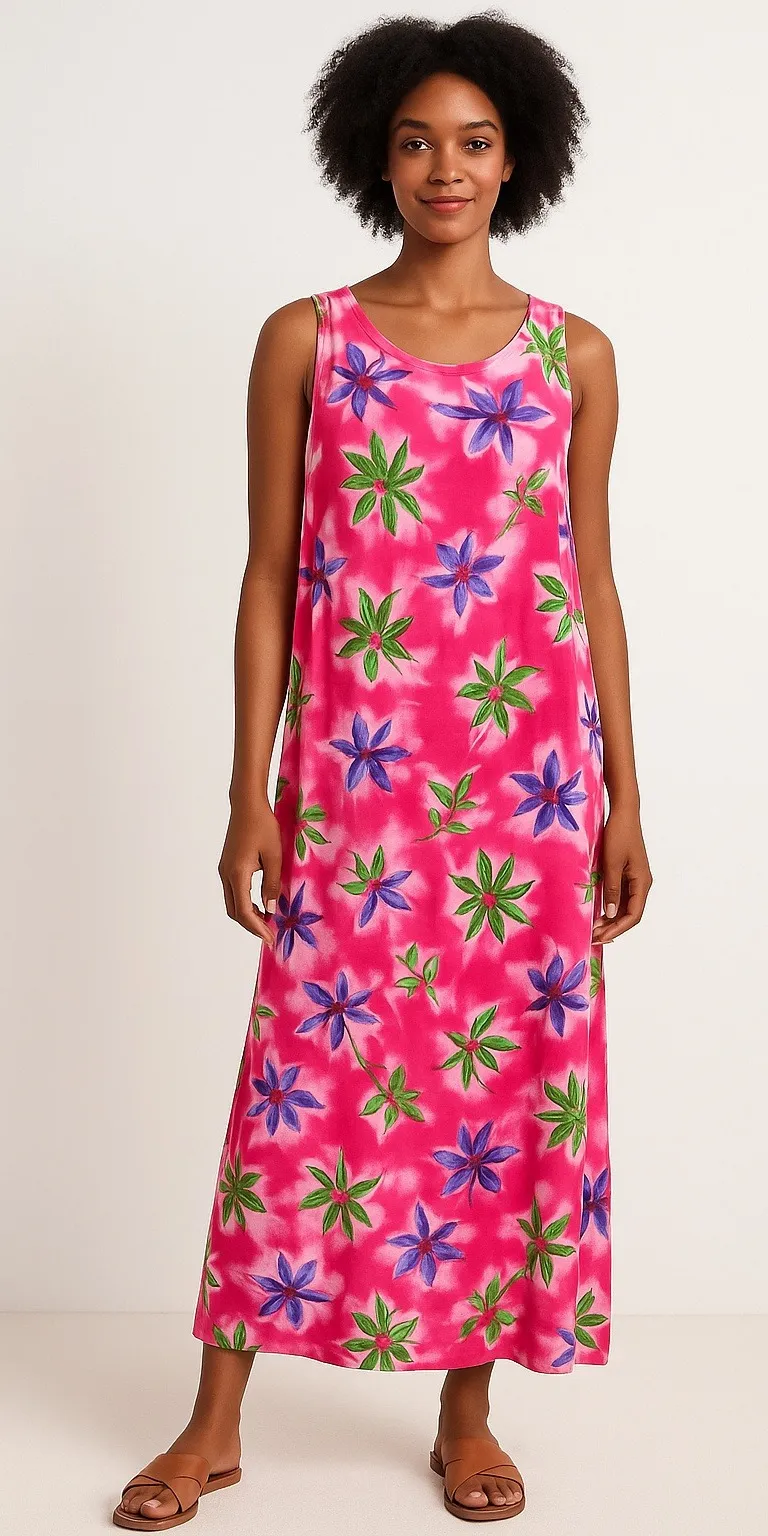 Style: Sundress, Maxi, Casual Dress Dress Length: Long Color: Pink Pit-Pit: 24 in length: 47 in Department: Women Sleeve Length: Sleeveless Pattern: Floral Occasion: Casual, Travel Material: Rayon Neckline: Round Neck Fabric Type: Rayon Character: Bohemian, Beach, Vacation, Summer Season: Spring, Summer Sleeve Type: Strapless Closure: Pullover # Phases, Maxi dress, Floral dress, Sleeveless dress, Summer dress, Casual dress, Rayon dress, Hot pink dress, Purple flowers, Green flowers, XL dress, Bohemian dress, Beach dress, Vacation dress, Lightweight dress, Muumuu I ship out items Monday-Friday. • All items come from a pet-free, smoke-free home. • Please compare the measurements to something you already own. Thank you for visiting my store.