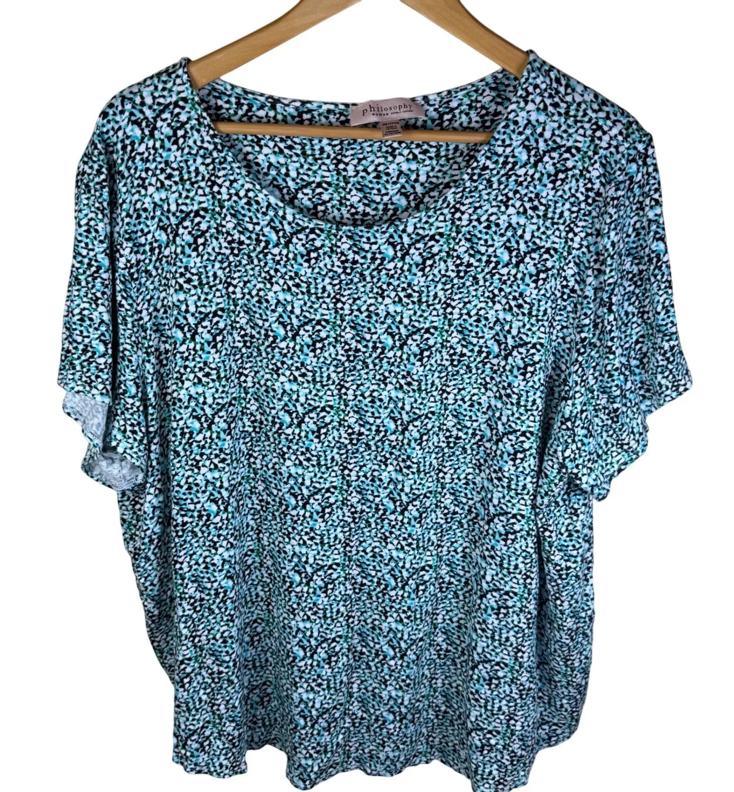 A short sleeve top with an abstract print. The relaxed fit and soft fabric offer comfortable wear. This top features a rounded neckline and a simple silhouette, making it a versatile addition to any wardrobe. Great Condition. No Stains, Tears, Rips, Holes or Pilling. From a smoke free home and perfume free home. We carefully inspect each item for quality. Measurements: Chest 29" Length 27" Thank you for stopping by! We ship out the next day. Travel, Beach, Ocean, Vacation, Cruise, Hawaii, Mexico, Caribbean, Resortwear, Sunny, Tropical, Island