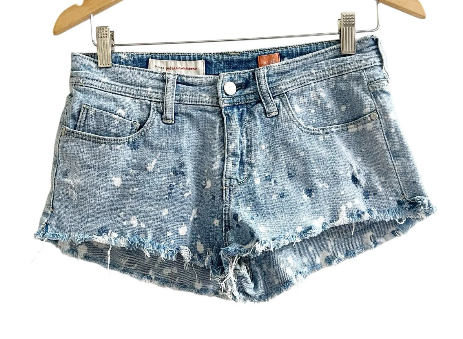 The Pilcro And The Letterpress Cheeky Denim Shorts Cutoff in Size 26 are stylish and versatile shorts perfect for various occasions such as travel, parties, casual outings, and workwear. Featuring a spotted pattern with a light fabric wash, these blue denim shorts have a zip closure and a mid-rise fit. Made from a blend of spandex and cotton, they offer a slimming and stretchy look with a 2.5-inch inseam and pockets for added convenience. These cut-off shorts from the Pilcro brand are ideal for a festival, bohemian, or classic-themed look during the summer, fall, or spring seasons. EXCellent used condition no holes or stains 98% cotton; 2% spandex; 32” waist ; 9.5” rise; 2.5” inseam