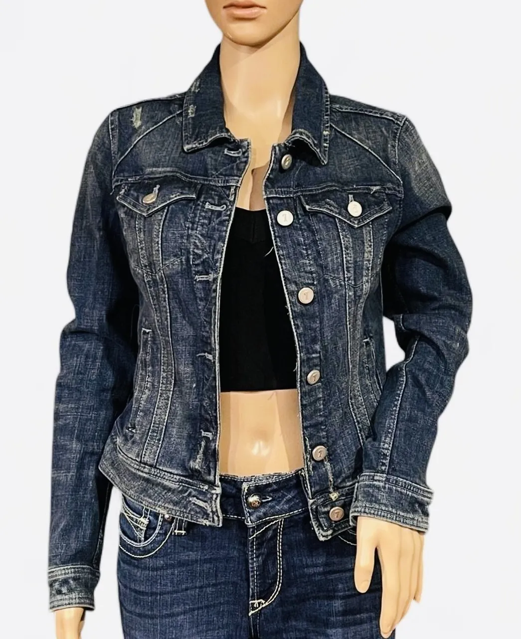 Pilcro and the Letterpress Anthropologie Dark Wash Denim Jean Jacket Size Small BOHO Grunge Vibe Distressed Button Closure EXCELLENT Condition MINT! Stylish dark blue jean jacket. Classic button-up design. Perfect for casual wear. Measurements-Laid Flat:Chest 16.5” Length 21” Sleeve 24” MSRP $149 #Pilcro #PilcroAndTheLetterpress #Anthropologie #DarkWashDenim #JeanJacket #SizeSmall #BOHO #Grunge #Distressed #denimjacket dark wash denim, boho style, distressed denim, button front, grunge aesthetic, size small, casual jacket, vintage-inspired, layered look