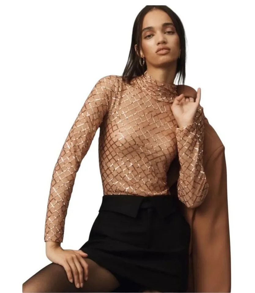 Pilcro Anthropologie turtleneck sequin top Small Tan - $50 - From The Mother