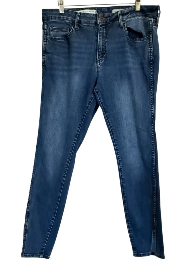 Pilcro Letterpress skinny jeans in a flattering mid-rise with a modern slit detail at the hem. Classic medium-wash denim with subtle fading. • Brand: Pilcro Letterpress • Size: 33 Tall • Rise: Mid-rise • Fit: Skinny • Color: Medium blue wash • Details: Hem slit • Closure: Button & zip Great used condition