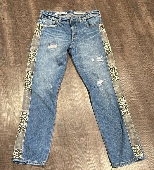 Excellent used condition. These have a tiny bit of a stretch to them. Lying flat waist is measuring 15 1/2 inches. Rise is measuring 8 1/2 inches. Inseam is measuring 28 inches. These jeans are made to hit around the ankle. That length