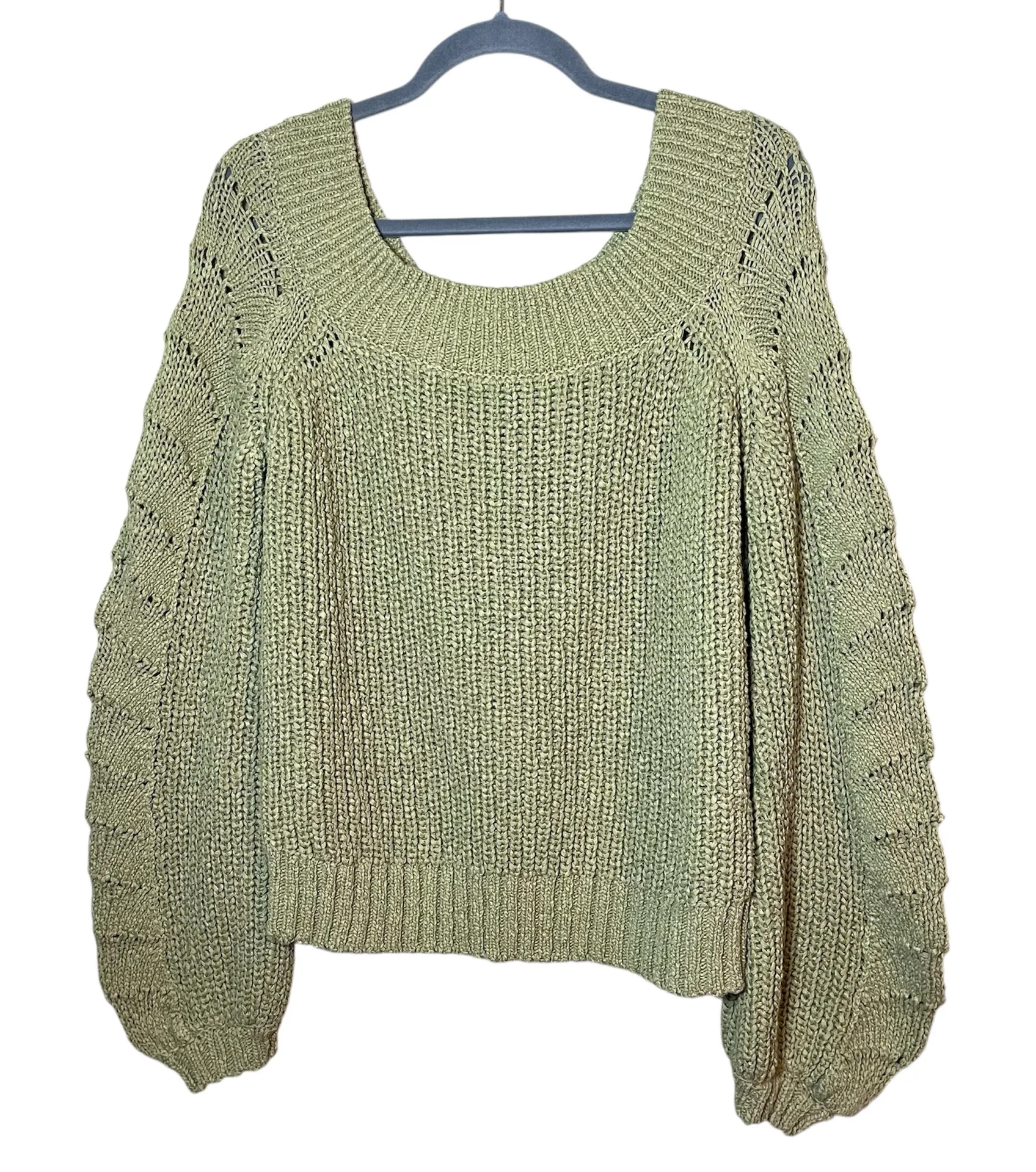 Pilcro Chunky Knit Balloon Sleeve Sweater Print: Light olive green Closure: Pullover Fabric: Cotton,... Show more