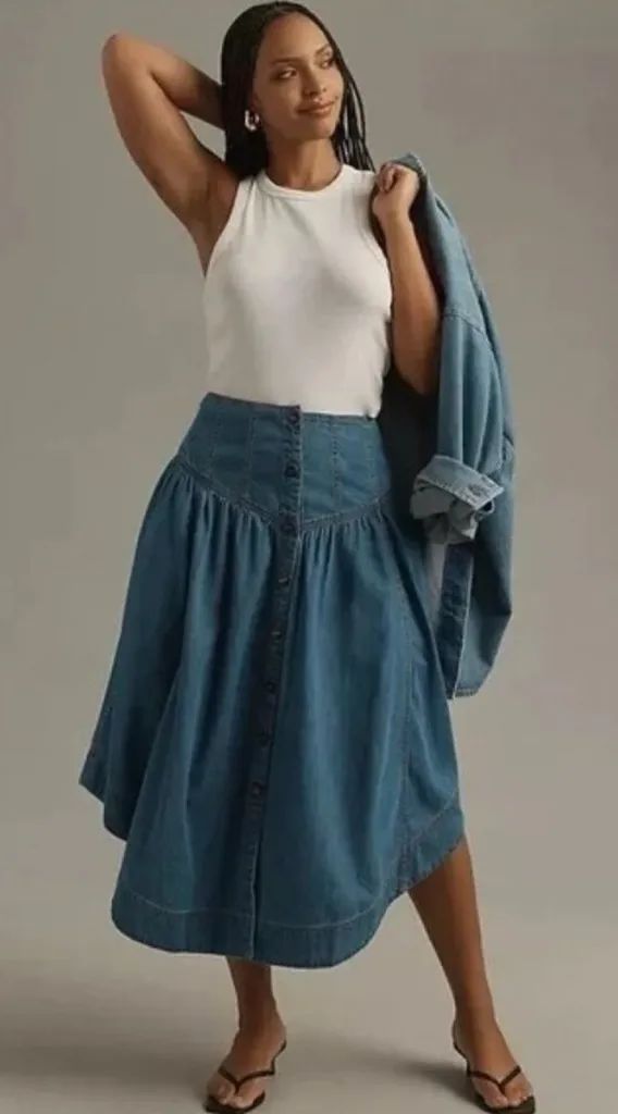 Pilcro Anthropologie Plus Basque Waist Denim Midi Skirt. Size 18W. Button front. In excellent, ge... Show more
