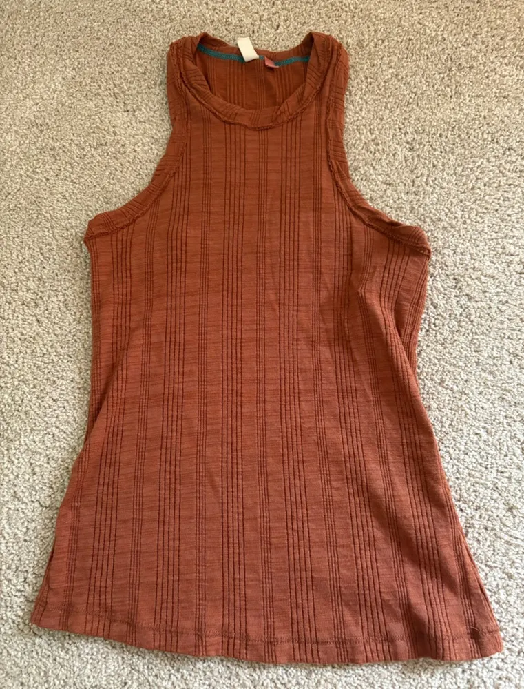 Perfect fall layering tank. Size xs from Pilcro sold at Anthropologie. Has high neckline. Made from sustainable fabric. Effortlessly chic and perfect for layering! This rust-colored tank features a ribbed texture and a flattering high neckline. Soft and lightweight material makes it great for everyday wear, pairing with jeans, skirts, or shorts for an easy, stylish look. ✨ Details: • Color: Rust / Burnt Orange • Style: Sleeveless, high neck, ribbed knit • Condition: Gently used, excellent condition • Size: XS 📌 Perfect for fall layering or warm summer days! #MinimalistStyle #RustTop #TankTop #FallFashion #PoshFinds Has light signs of wear from normal use. No holes, stains or tears.