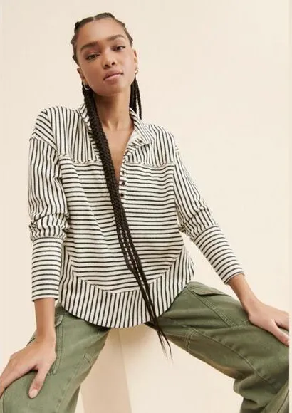 • Brand & Style: Pilcro by Anthropologie Spliced Henley Top • Color: Neutral (beige/cream mix) •... Show more