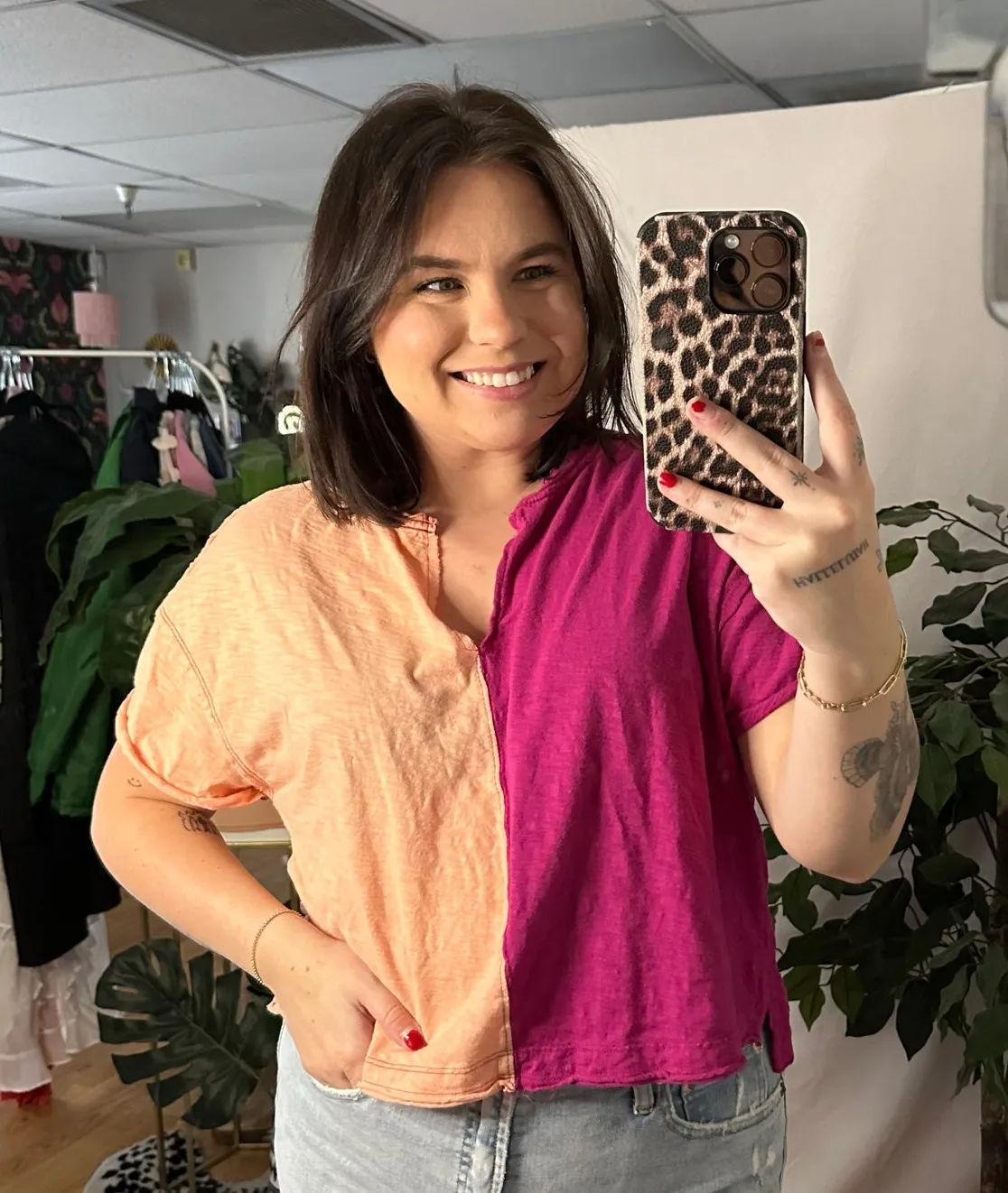 Pilcro Gianna Contrast Short Sleeve V-Neck Tee Peach Pink Size XS - $25 - From Lily