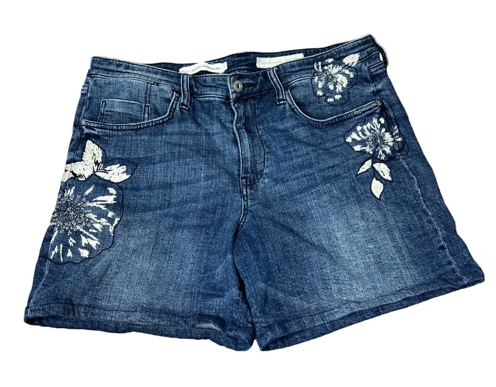 Tag says 32, however the waist measures 35" Flatlay Measurements: waist 17.5" rise 11" inseam 6" high waist waisted, floral contrast embroidery, modest, longer lengthSize: Womens 35 Condition: Pre-Owned Great condition, no flaws