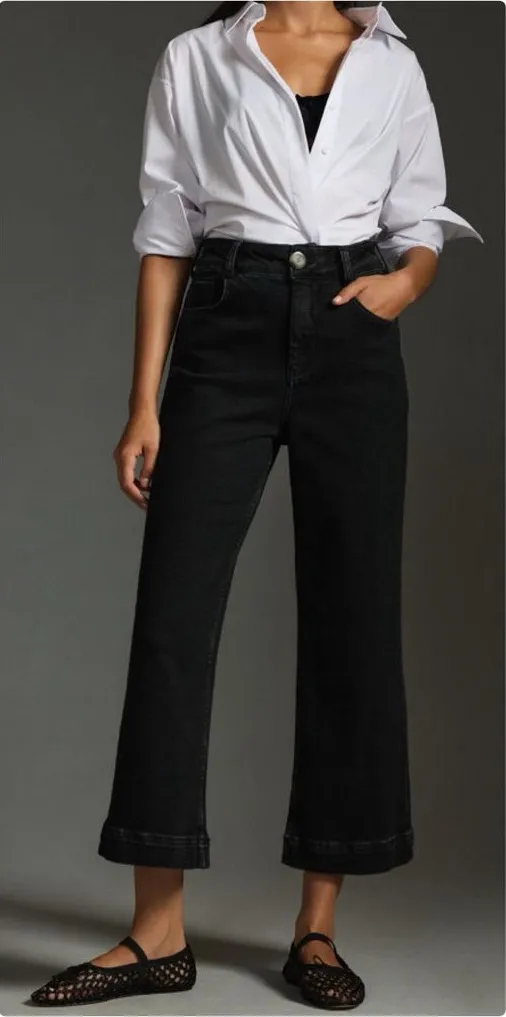 ⸻ Description Chic and flattering Pilcro by Anthropologie pants in the Skipper silhouette. These feature a high-rise waist with a structured wide leg and cropped length, making them perfect for flats, loafers, or heels. Classic black color makes them easy to dress up or down. Made from a comfortable stretch cotton blend for everyday wear. Details: • Brand: Pilcro (Anthropologie) • Style: The Skipper • Style Number: OB1725444 • Size: 30 • Color: Black • High rise • Wide leg • Zip fly with button closure • Five-pocket style Condition: Excellent pre-owned condition ⸻ Measurements (approximate, laid flat) • Waist: 17” • Rise: 13” • Inseam: 26” ⸻ Fabric • 98% Cotton • 3% Polyester • 1% Elastane Made in Turkey ⸻