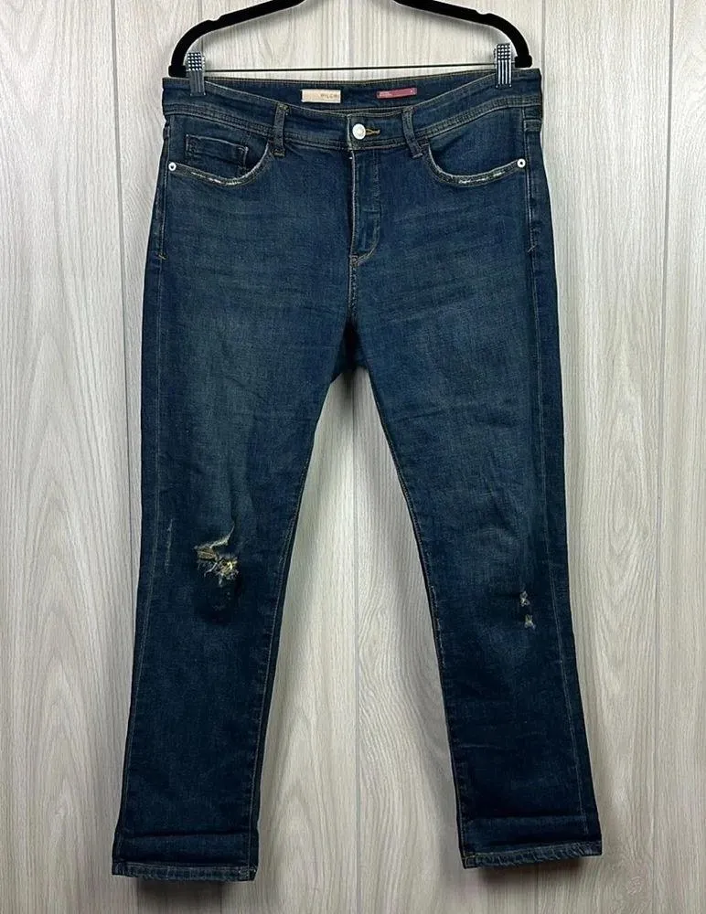 Pilcro Womens Jeans 29 Dark Wash Straight Leg Cotton Pants Hole High Rise Weight: 1.3lb Size of item: 29 US Condition: Good preowned condition. This has been worn. No flaws, stains or tears. Ships from a smoke free home! Please see all photos for exact item condition Thanks for checking out my store! All items are shipped within two business days. Make a bundle to save on shipping cost.