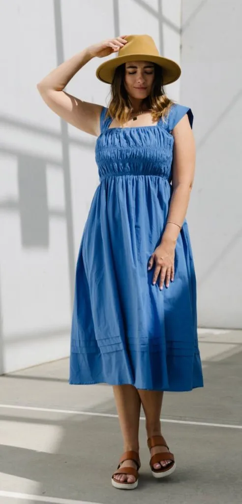 PINCH Royal Blue Ruched Tank Midi Dress Milkmaid Cottagecore Great preowned condition Size L Approx... Show more
