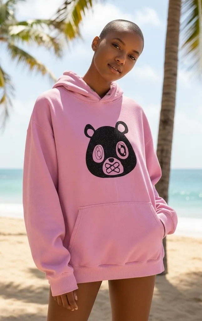 **No tags. No hat string. Some creasing on bear. Embrace playful comfort with this eye-catching pink hoodie. The front showcases a bold black bear face graphic, shimmering with subtle glitter for a touch of sparkle that adds personality to any casual ensemble. Its relaxed, oversized fit promises ultimate coziness, making it perfect for lounging at home, running errands, or heading out for a casual day with friends. The front kangaroo pocket offers a convenient spot for your hands or small essentials. This hoodie is ideal for relaxed weekends, casual outings, or as a fun layering piece. Measurements: • Pit to Pit: 24 in • Shoulder to Hem: 27 in Style: Pullover Department: Unisex Adults Type: Hoodie Closure: Pullover Theme: Novelty Features: Pockets, Graphic Print, Hooded Fabric Type: Knit Sleeve Length: Long Sleeve Neckline: Crew Neck Performance/Activity: Gym & Training, School, Casual Season: Fall, Spring Fit: Relaxed Occasion: Casual, Activewear Keywords: graphic hoodie, oversized sweatshirt, glitter graphic, streetwear, casual wear, comfort hoodie, pink sweatshirt, bear graphic, fall fashion, winter apparel, loungewear, everyday essential