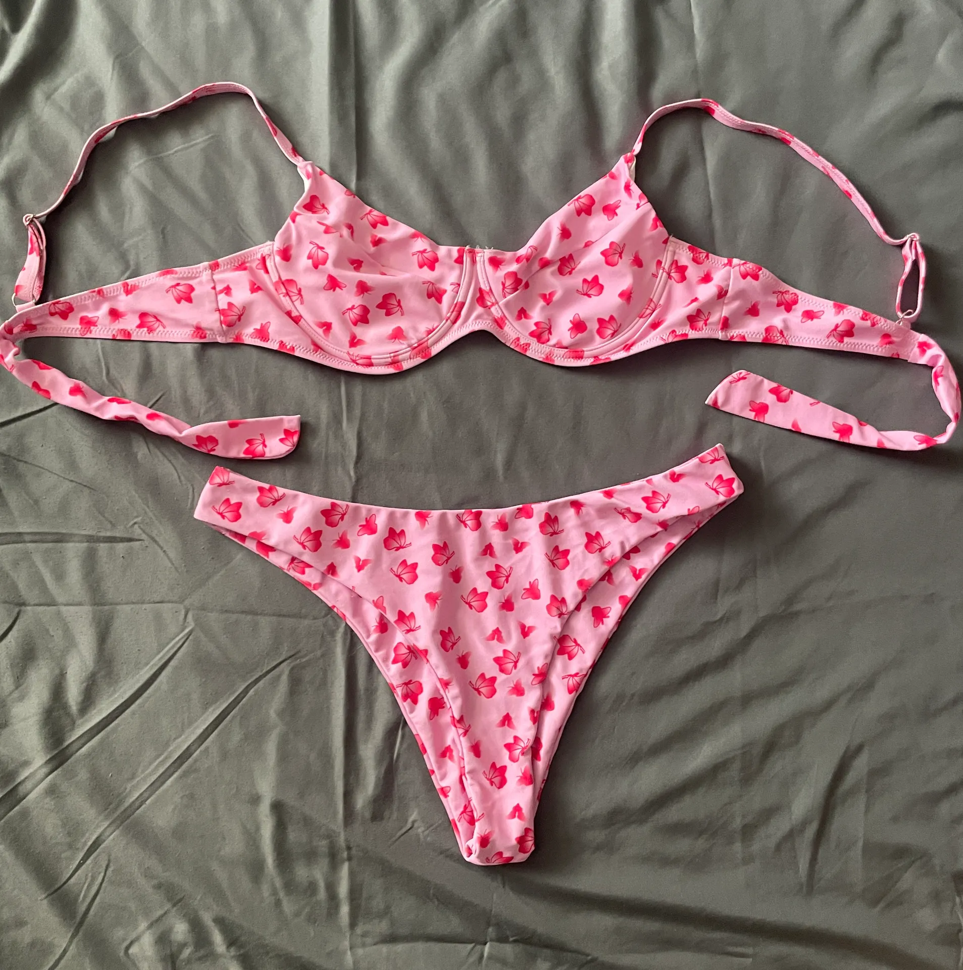 shein bathing suit CAN FIT A LARGE warn a couple times the top 38D is underwire and push up and ties in the back bottoms are double lined AMAZING coverage in the front especially if you got a fat 🐱 and cheeky in the back Price is negotiable
