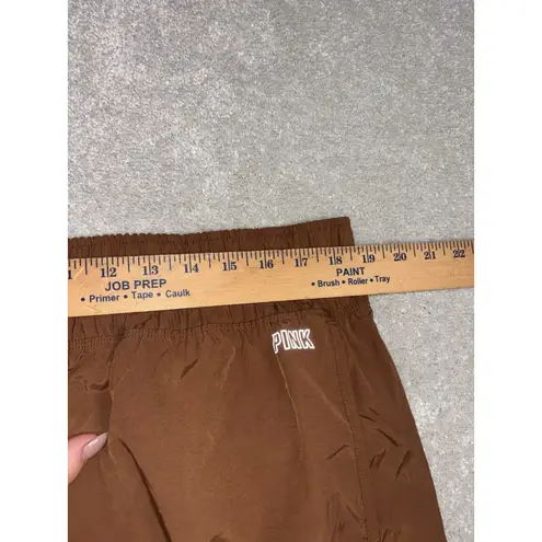 These Victoria's Secret Pink Active Shorts in XXL are designed for the active woman on the go. Made from water-resistant polyamide material, they are lined for added comfort and feature convenient pockets. With a 3-inch inseam and an athletic fit, these brown shorts are perfect for a variety of sports activities and workouts, including tennis, cycling, volleyball, and more. The foldover style, elastic waist, and quick-dry breathable fabric make them easy to care for and ideal for year-round wear in any season. Perfect for the modern woman looking for both style and functionality in her activewear wardrobe. 5950