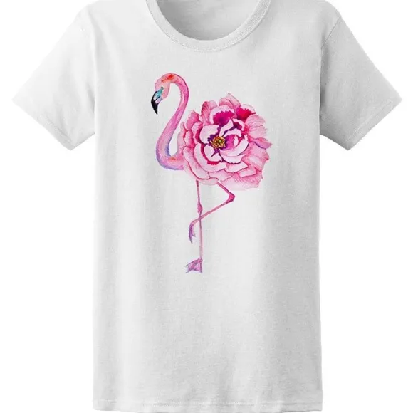 Flamingo With Flower Body Women's Tee -Image by Shutterstock Watercolor Flamingo With Exotic Flowers. Hand Drawn.Women's White T-shirt Brand new without tag/size large/runs slightly small