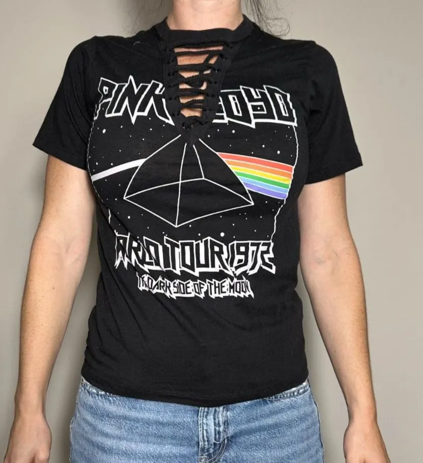 Pink Floyd Dark Side of the Moon World Tour 1972 Lace Up T-Shirt Sz Small Black - $22 - From Thrifted