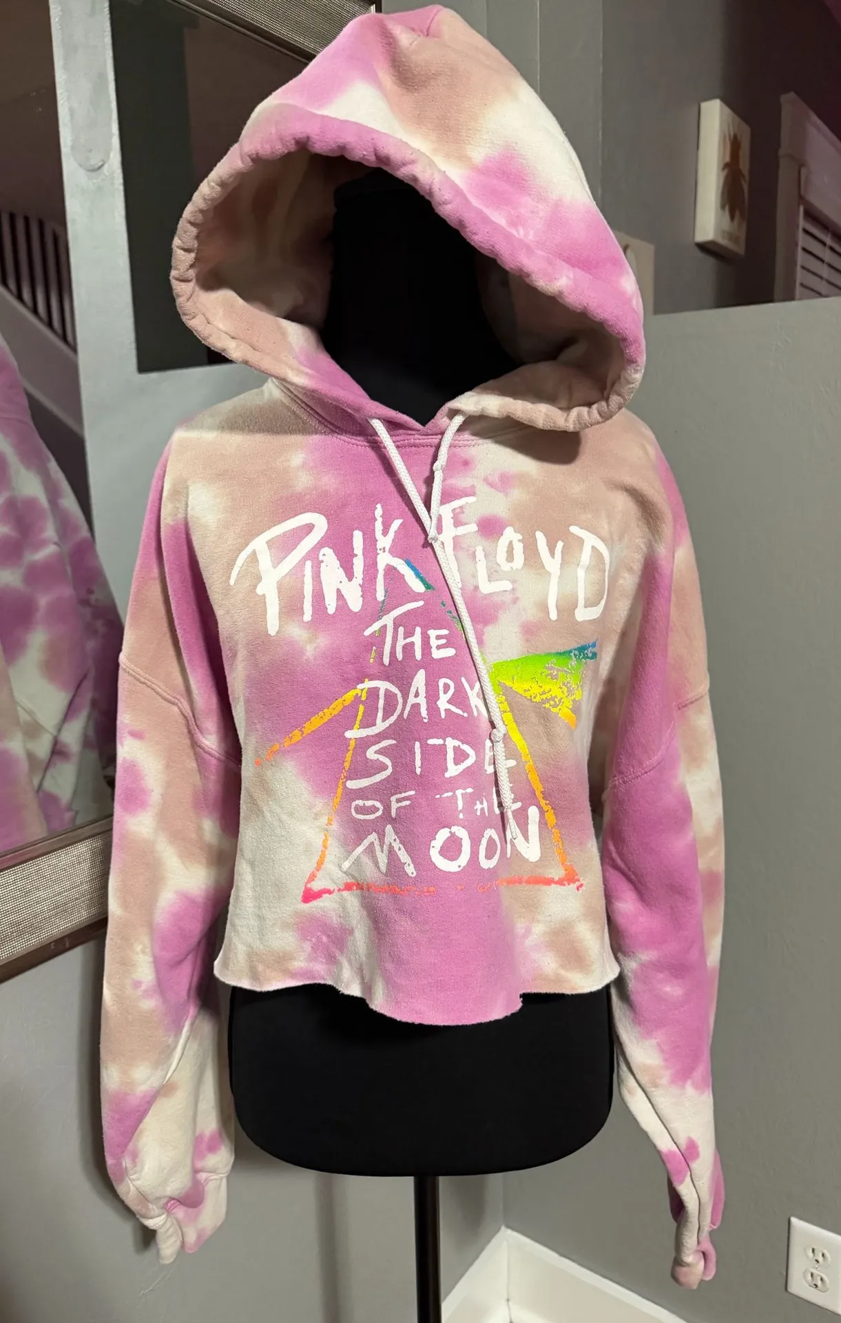 Pink Floyd The Dark Side of the Moon cropped hoodie pink tie-dye sweatshirt size large. Length 16in,... Show more