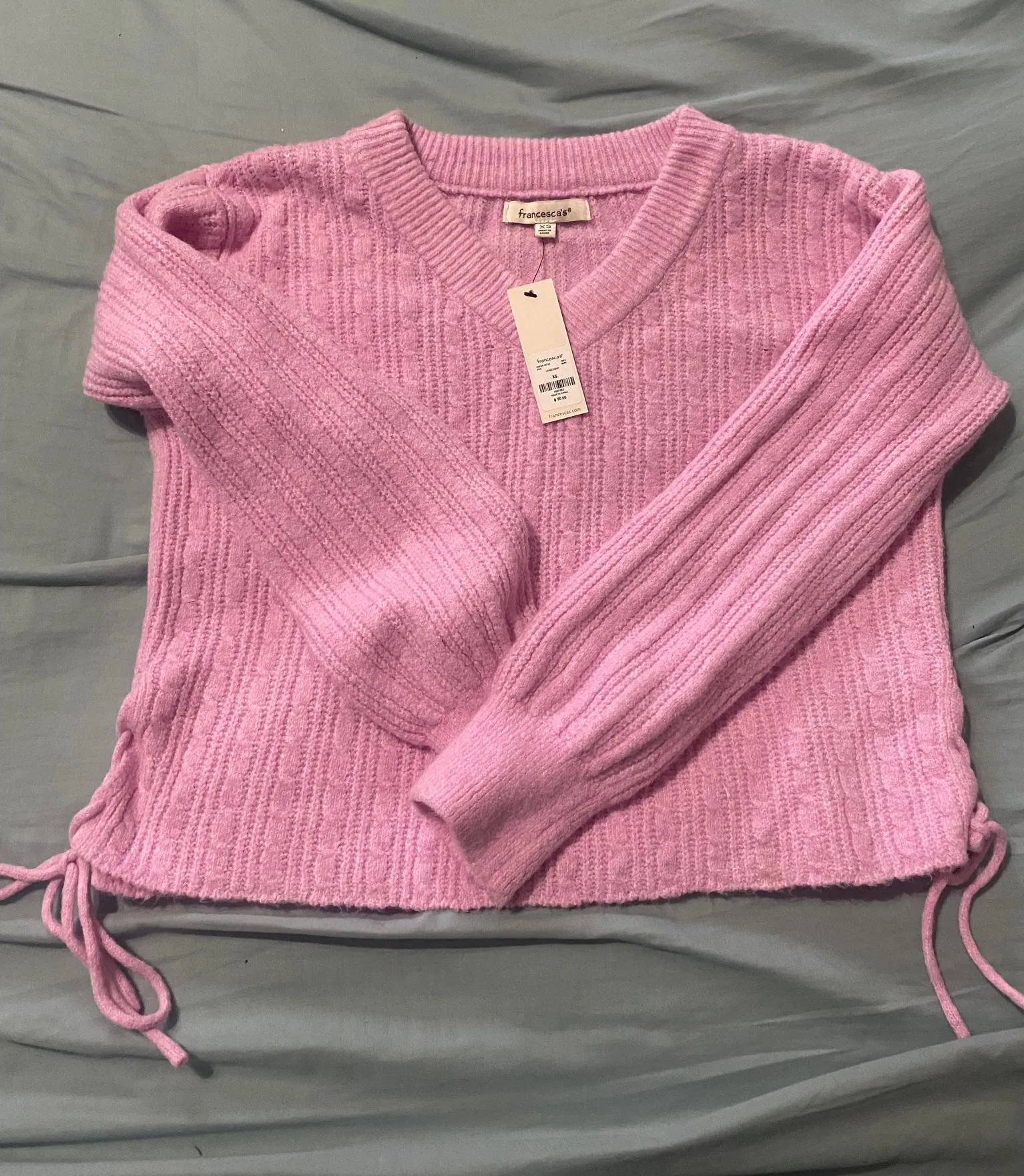 Cute pink v-neck sweater from Franchesca’s. Brand new with tag XS