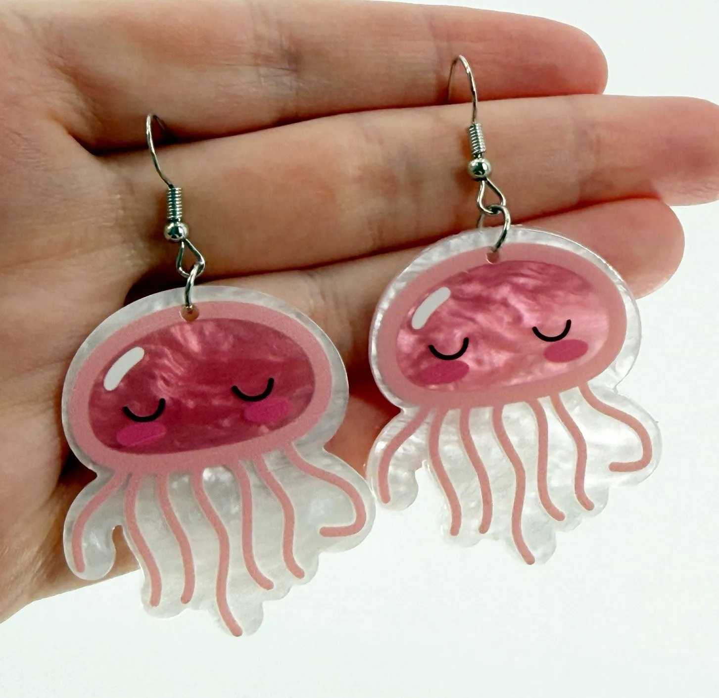 Pink Kawaii Jellyfish Acrylic Dangle Earrings, Novelty Earrings - $14 - From Rachel