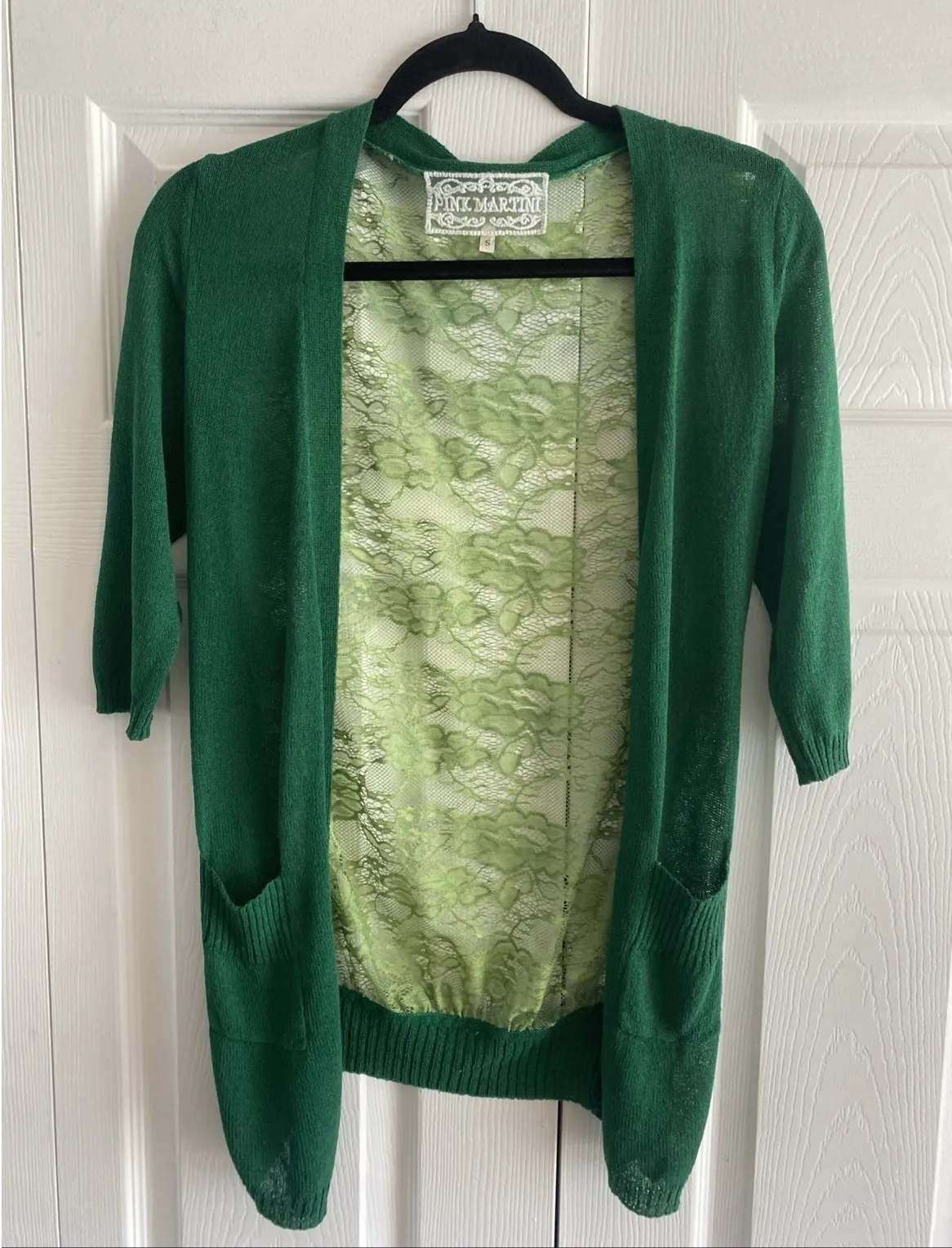 Pink Martini Womens Small Green Knit Cardigan Sweater Lace Back Garden Party - $42 - From Arielle