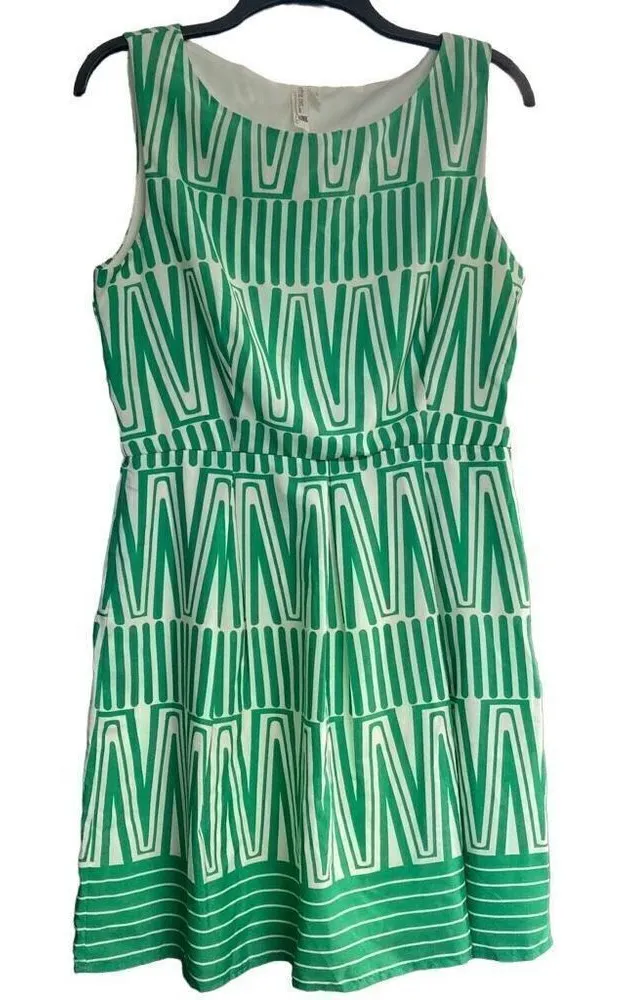 BRAND: Pink Öwl SIZE: Large COLOR: Green & White CONDITION: Pre Owned Google MEASUREMENTS: See Pictures MATERIAL: 100% Polyester OTHER DETAILS: Sleeveless Hand Wash Length 33” I believe This Runs Small So: Please see approximate measurements in pictures before purchasing. Use your own judgment as to the fit.