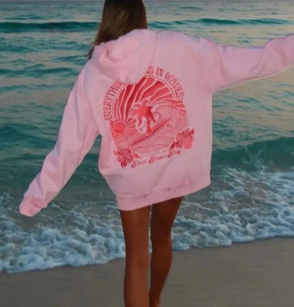 Pink Palm Puff Everything Comes in Waves Hoodie Size M - $35 - From Halle