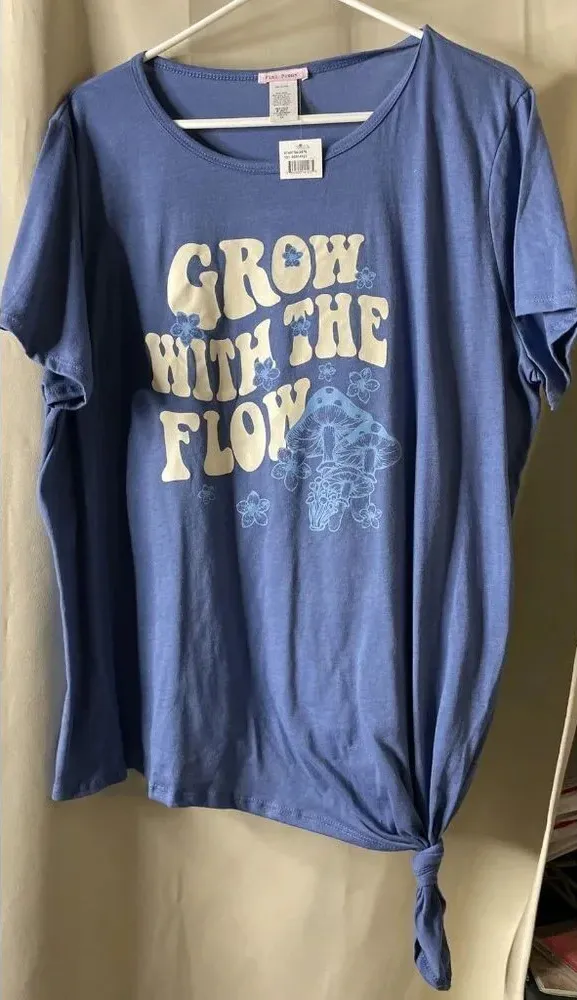Pink Peony‎ Womens Blue Mushroom Side Tie Size 2X NEW Grow With The Flow T Shirt - $20 New With Tags - From Andrea