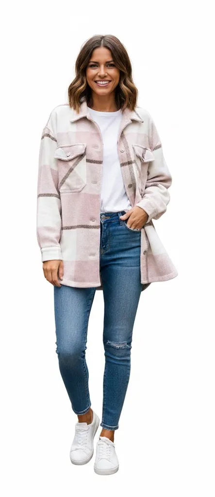 Ashley by 26 International Mauve Plaid Shacket Jacket. Purchased at Buckle Relaxed shirt jacket in... Show more