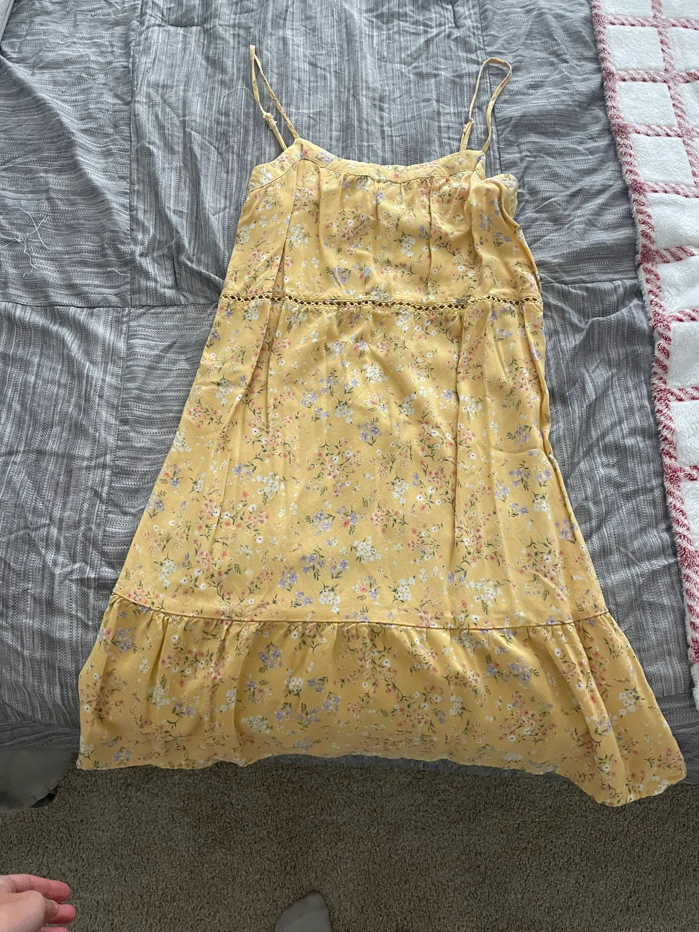 Yellow floral pink rose dress! I wore this maybe once or twice. The pattern and detailing is so cute... Show more