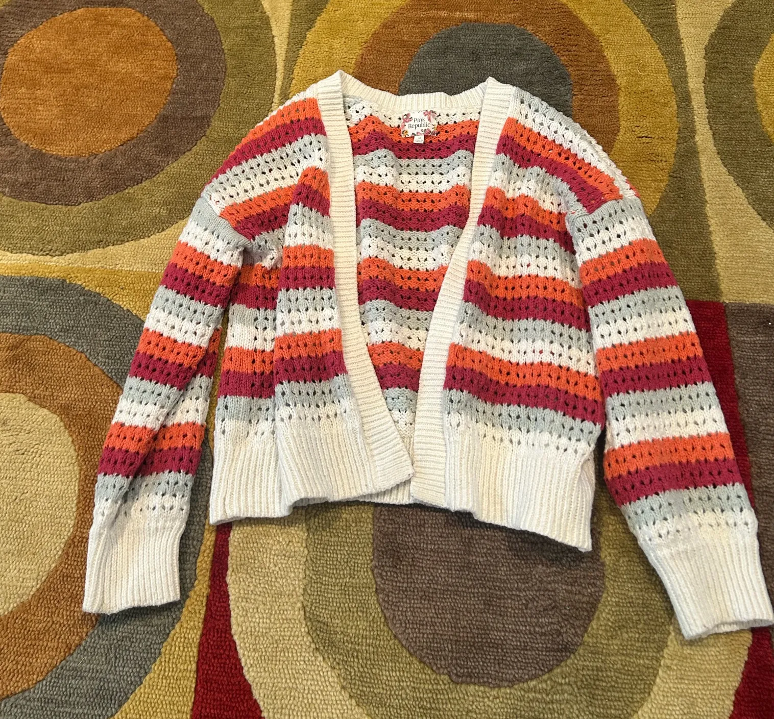 Pink Republic Colorful Stripe Cropped Open Cardigan Sweater Women’s Size Medium Great Condition O... Show more
