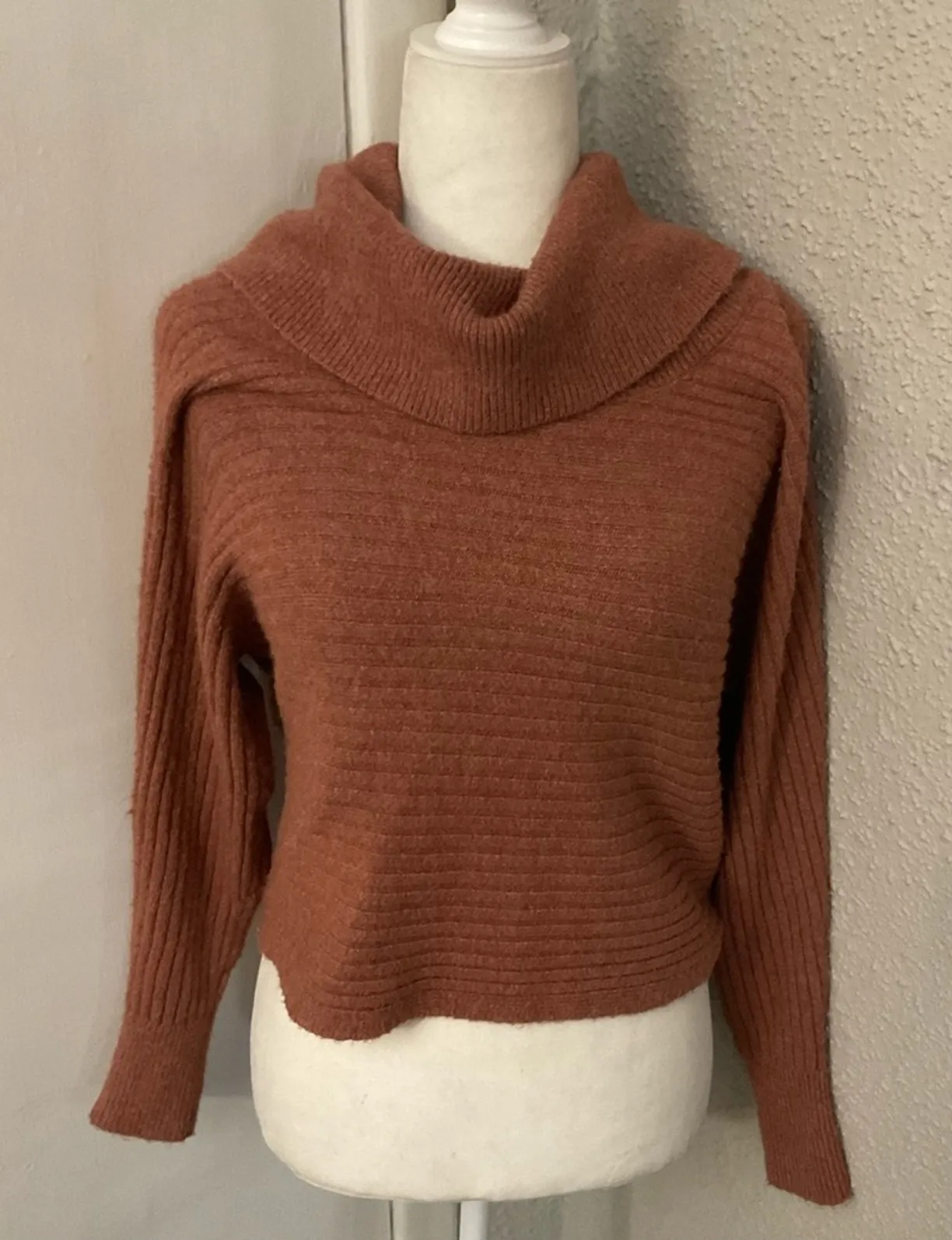 Style: Cowl neck sweater with song sleeves Color: Soft Bronze Size: XS Armpit: 20" Length: 22" Shou... Show more