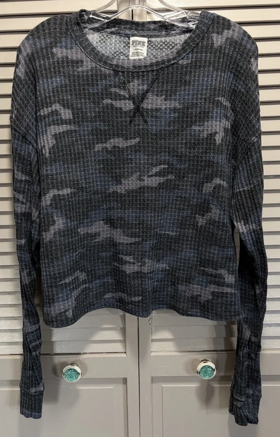 The PINK Victoria's Secret Gray Camo Thermal Long Sleeve Top in size L features a relaxed semi-crop... Show more